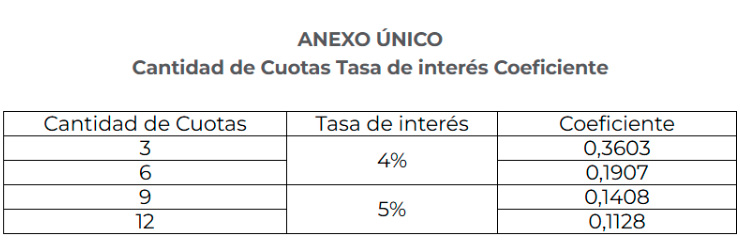 - 3 a 6 cuotas: Interés del 4% mensual sobre saldo.